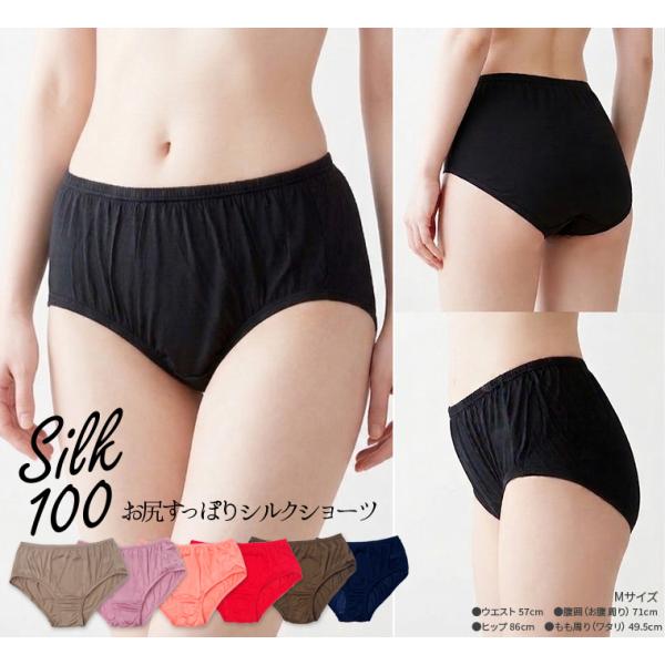お尻すっぽり シルクショーツ レディース シルク100% 絹 夏 締め付けない パンツ ずり上がらない 深め 薄手 大きめ 20代 30代 40代 50代 60代 841