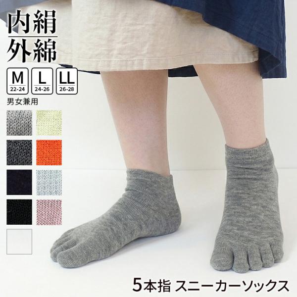 5本指スニーカーソックス 内絹外綿 レディース メンズ くるぶし 夏用 夏 春 冷えとり 五本指ソックス 5本指 シルク 綿 消臭 蒸れ防止 脱げない 日本製 841