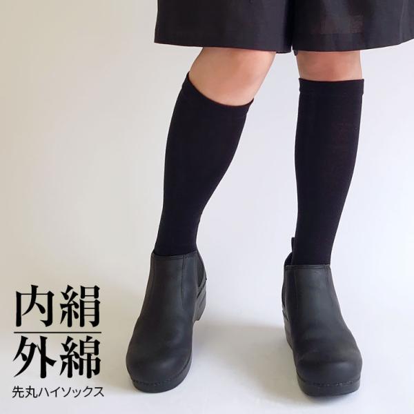 冷えとり靴下 内絹外綿 ハイソックス レディース メンズ 冷え取り靴下 オーバーソックス オフィス 一体型 シルク 綿 黒 ブラック 無地 日本製 841