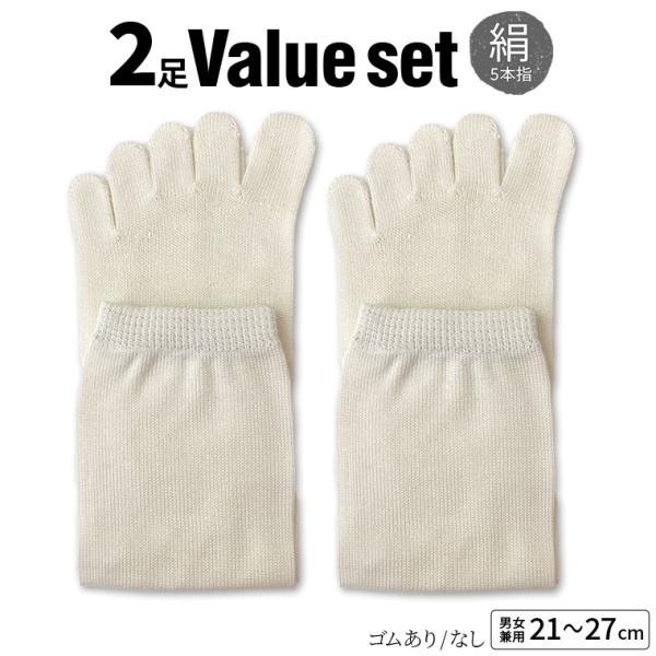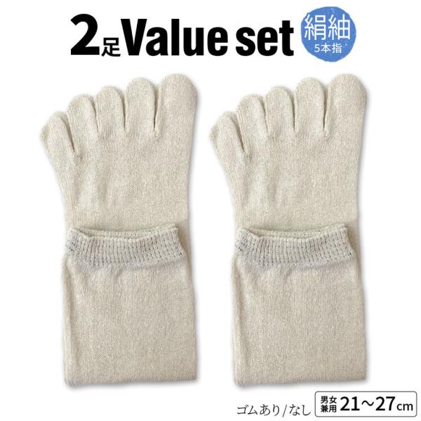 冷えとり靴下 2足セット 絹紬 5本指ソックス×2 シルク 冷え取り靴下 絹5本指靴下 レディース メンズ 絹100% 蒸れない ゴム選択可 かかとなし 日本製 841