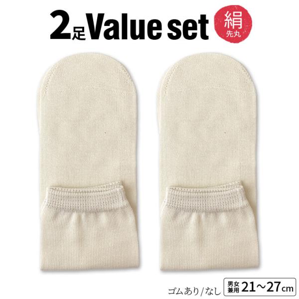 冷えとり靴下 2足セット シルク先丸ソックス 絹 靴下 レディース メンズ シルク100% 絹先丸 冷え取り靴下 ゴム選択可 かかとなし 日本製 841