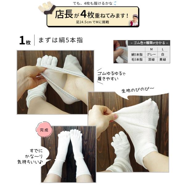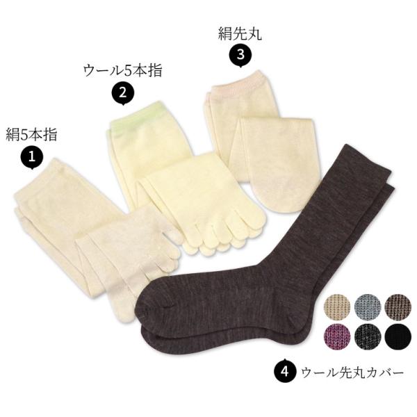 冷えとり靴下 4足セット 基本の冷え取り靴下 4枚重ね レディース メンズ 絹 シルク 5本指ソックス ウール 防寒 暖かい あったか 冷え性 温活 日本製 841