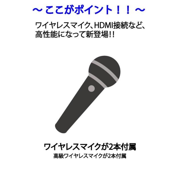 ◆付属品 取扱説明書、ワイヤレスマイク×2、マイクホルダー×2、マイクホルダー取付けネジ×6、背面端子保護カバー、 電源コード(長さ:1.8m)、リモコン、映像接続ケーブル(約3m)