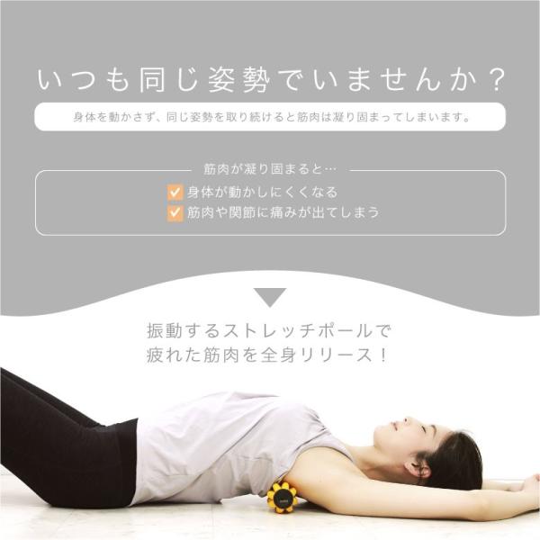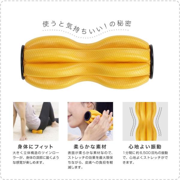 商品説明:■振動とストレッチで凝り固まった筋肉の緊張を開放/■表面のやわらかな素材が皮膚への負担を軽減/■軽量・コンパクト/■サポートカバーで手が届きにくい場所もケアが可能/■肩・背中・脚などの全身のリフレッシュに/