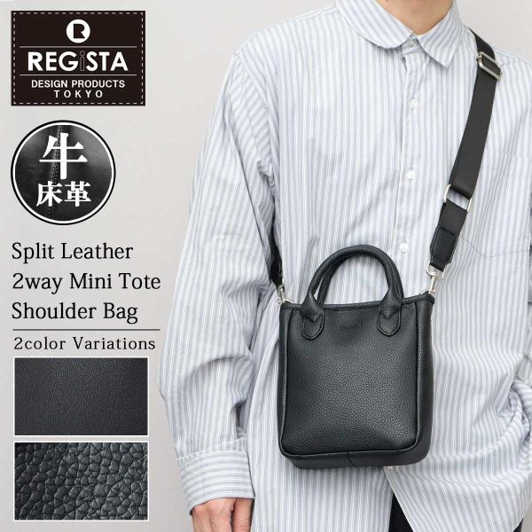 ミニトートバッグ メンズ レディース 2WAY ミニショルダー スプリットレザー 縦型 小さめ 斜めがけ ハンドトート レジスタ REGiSTA