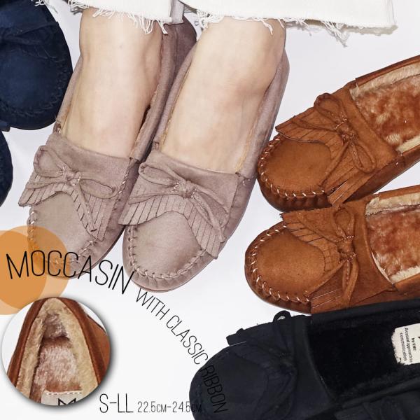 【30%OFFクーポン対象】モカシンシューズ レディース ローファー 内ボア スリッポン ファー ムートン 痛くない 履きやすい