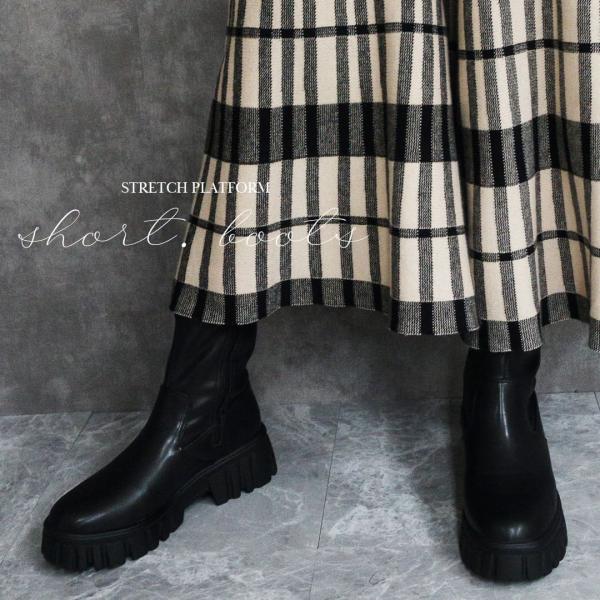 【30%OFFクーポン対象】ブーツ レディース 歩きやすい 厚底 ショート 歩きやすい ソックスブーツ サイドゴア ブラック 黒