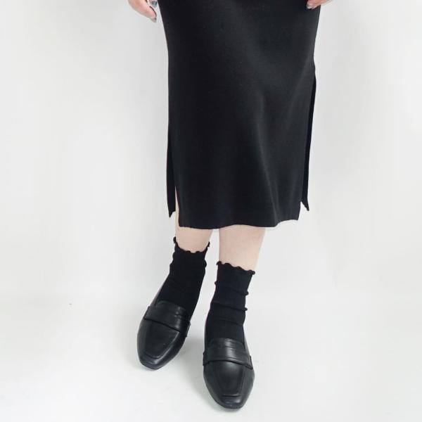 スタイリッシュなシルエットと上品なスクエアトゥで仕上げました。シンプルならではで、そんなコーディネートにも合わせやすく主張しすぎない大人な印象。