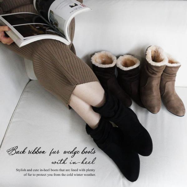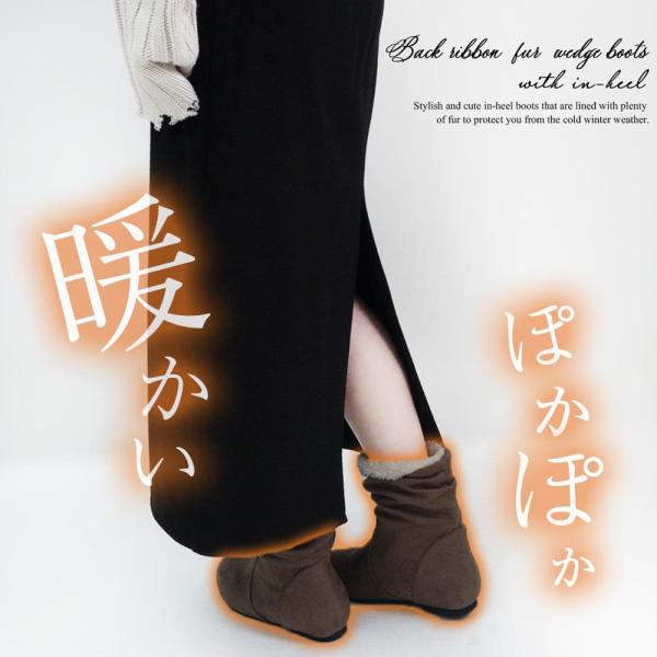 【40%OFFクーポン対象】ショートブーツ レディース インヒール ボア ショート 50代 ミドル 冬 ヒール シークレットブーツ
