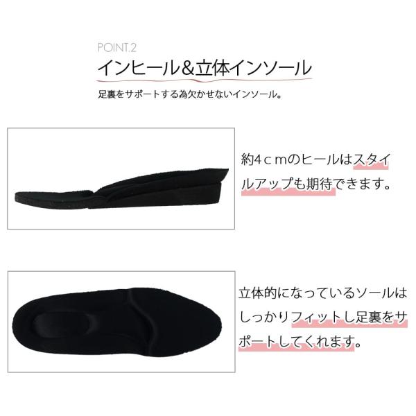 ●POINT2:インヒール&立体インソールでスタイルアップ&足裏サポート