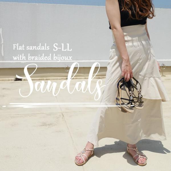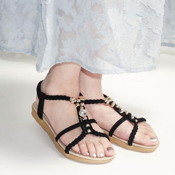 サンダル レディース 履きやすい シューズ 編み込み ビジュー フラットサンダル ぺたんこ フラット リゾート 旅行 ビーチ サンダル 春夏