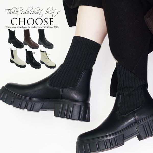 【30%OFFクーポン対象】ブーツ レディース 歩きやすい 厚底 ショート 歩きやすい ソックスブーツ サイドゴア ブラック 黒