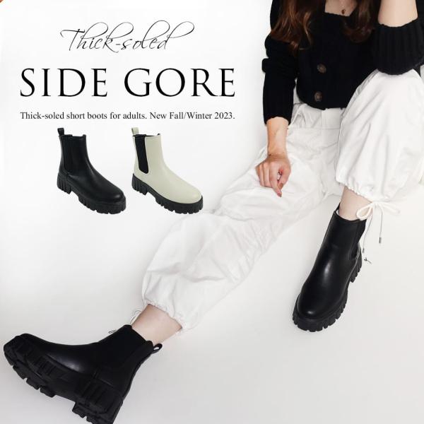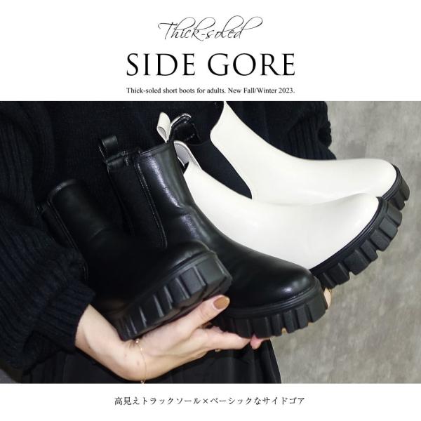 歩きやすい 履きやすい 厚底 滑りにくい シンプル ボリュームソール 黒 タンクソール サイドゴア ブラック アイボリー 白 ホワイト カジュアル おしゃれ 旅行 滑りにくい 靴 シューズ ショート丈 厚底 美脚 スタイルアップ 22.5cm S 23cm M 23.5cm L 24cm LL 24.5cm ブラックフライデー