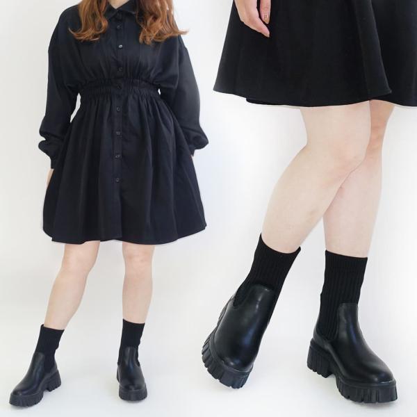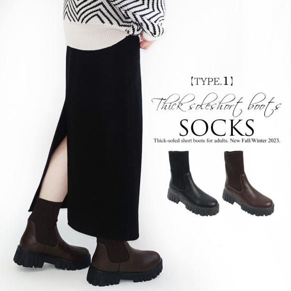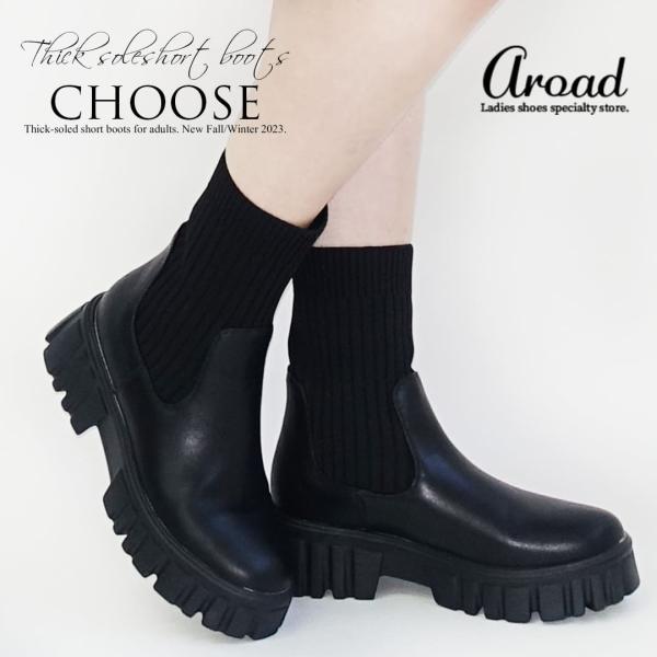 【30%OFFクーポン対象】ブーツ レディース 歩きやすい 厚底 ショート 歩きやすい ソックスブーツ サイドゴア ブラック 黒