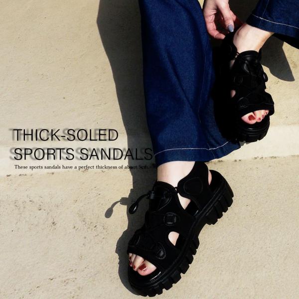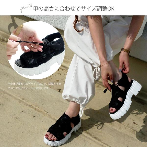 サンダル レディーズ 厚底 夏 歩きやすい 黒 履きやすい 50代 スポーツサンダル 厚底サンダル