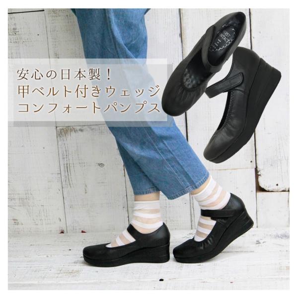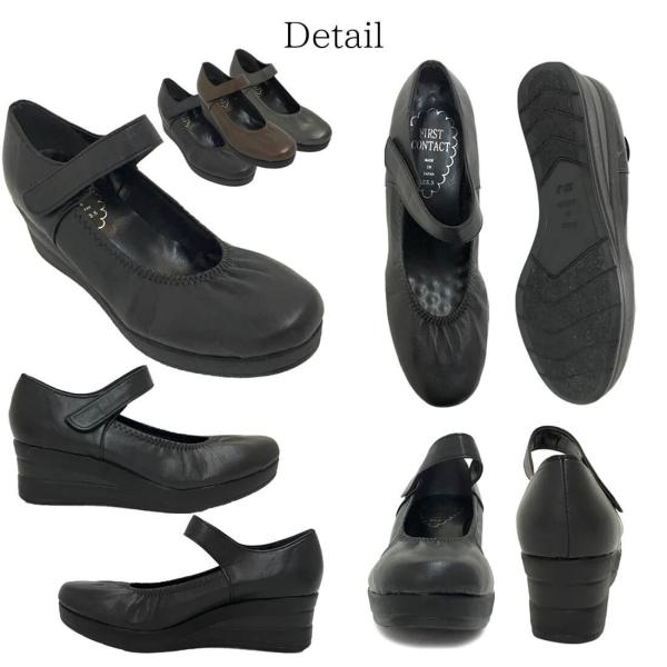 甲ベルト ウェッジパンプス 走れるパンプス ファーストコンタクト アンクルストラップ ブラック 痛くない 母の日