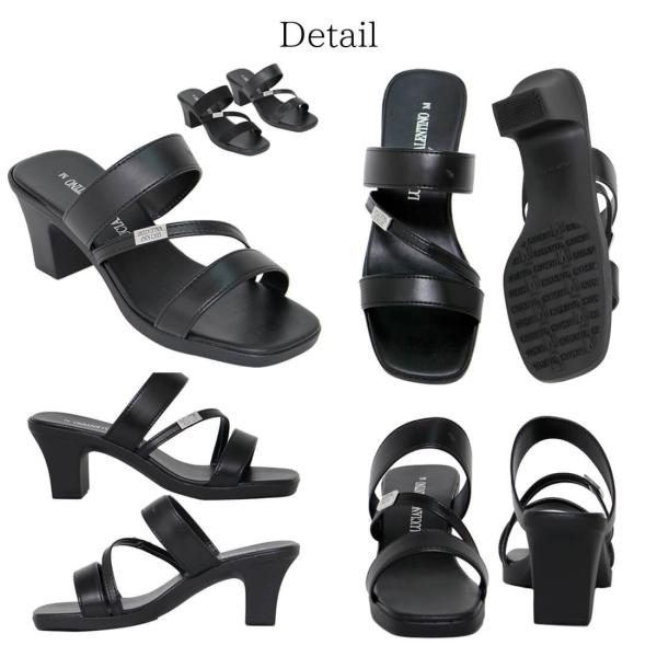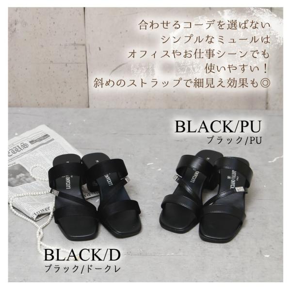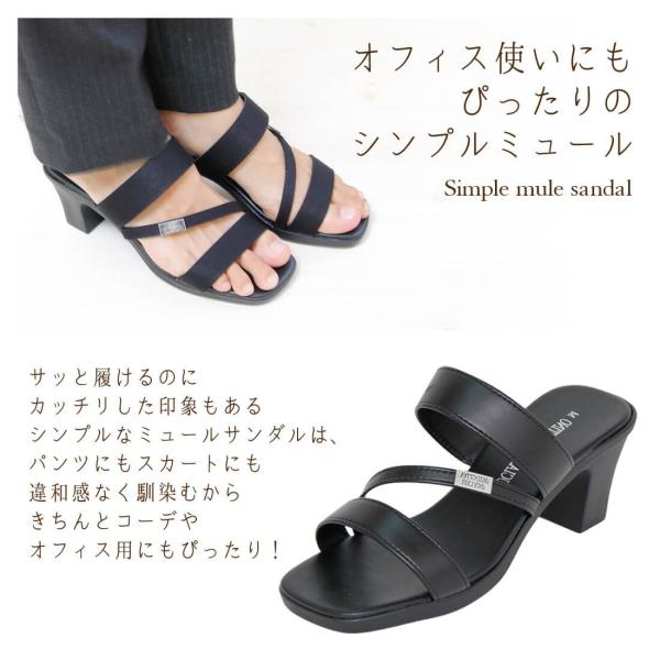 ミュール サンダル ブラック オフィスサンダル シンプル つっかけ ストラップ ミドルヒール 春夏 母の日