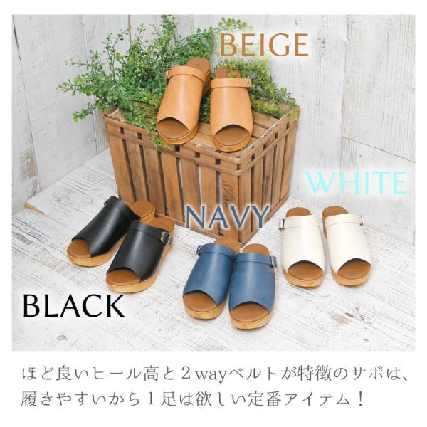 こちらのタイプは、甲の飾りベルトとしてそのまま履いても良し、かかとに引っかけて脱げにくく履いても良しの2wayベルトつきだからますます便利に、日常のさまざまなシーンに対応できます。