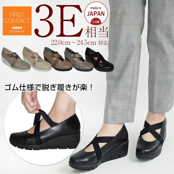 パンプス レディース ウェッジソール ストラップ ファーストコンタクト 21.5cm フォーマル 黒厚底 敬老の日 母の日