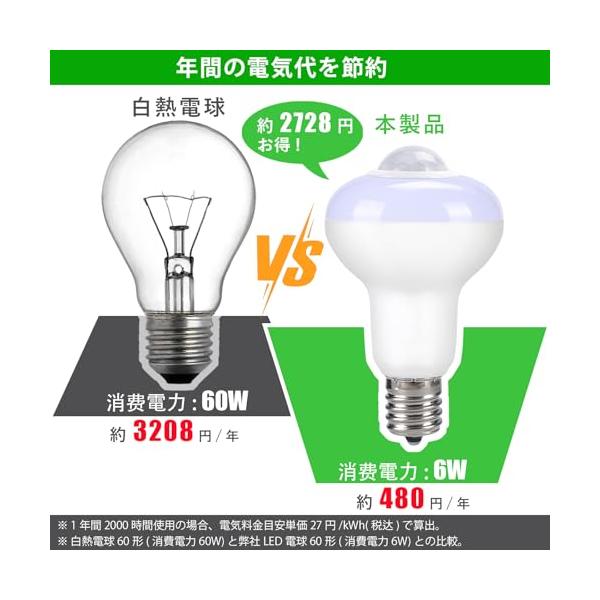 人感センサーLED電球 E17口金 60形相当 電球色 6W 610lm 小形電球 自動点灯・消灯 明暗センサー付 赤外線センサー 消し忘れ防止