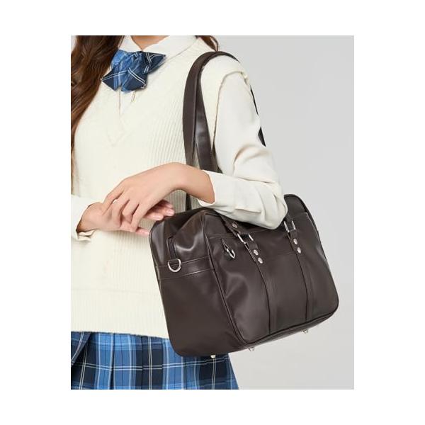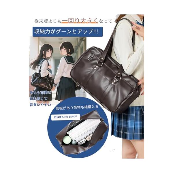 [uishun] スクールバッグ 高校生 合皮 スクバ 女子 高校生 ボスドンバッグ 学生 JK 大きめ 革 大容量 通学 通塾 大容量 肩紐長