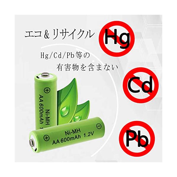 ・環境にやさしい:ニッケル水素電池AA充電式、Hgなし、Cdなし、Pbなし。金属汚染を防ぐための環境保護材料。