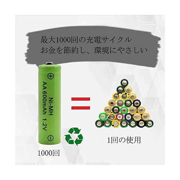 単3電池 充電式 AA 600mAh1.2V ニッケル水素電池 の実容量低自己放電 ソーラーランプ単三電池 家庭用充電式電池時計カメラリモコンソ