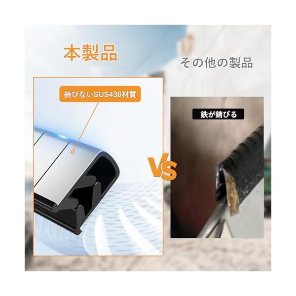 ・SUS430特殊ステンレス骨組みはSUS430特殊ステンレスを採用されており、雨に濡れても錆びない。ドアの端から端まで簡単に取り付けられる、お好みの長さにカットしてご使用いただけます。