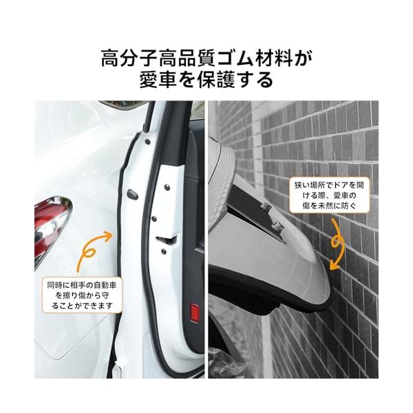 ・擦り傷防止・愛車を保護するドア開け時の傷予防によく役に立ちます、隣に並べた車両、壁、樹など、ドア開け時不意にぶつかり、傷を残す性は高い、ドアモールを付けることにより、軽くぶつかり合っても痕跡が残らない、横に車が並べてもトラブルをおこす心配ありません。
