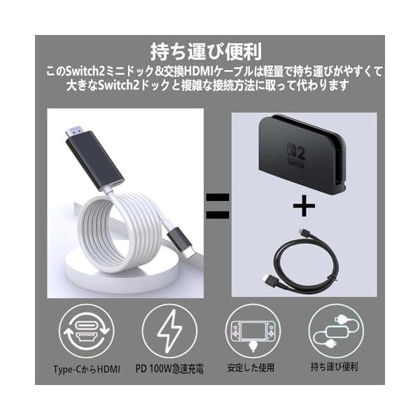 Switch 2 ドック「21.2.0」対応 純正直接に TV 出力 Hdmi Type-C スイッチ 4K&1080解像度/HDMI変換/ P