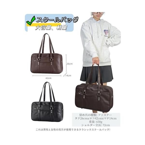 [Osteenii] スクールバッグ 合皮 スクバ 女子 高校生 学生 JK 制服 鞄 PU 大容量 通学 (茶色)