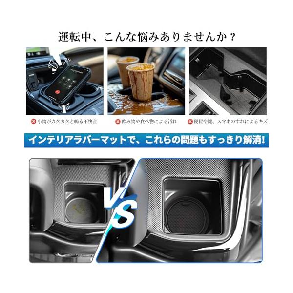・車種専用・傷防止新型スペーシアカスタムmk94s 専用に設計されたラバーマット(21枚入り)は、各部品が車両の精密データに基づいて設計されています。そのため、寸法のズレを心配する必要はありません。表面は高耐久性素材を採用しており、傷がつきにくい仕様です。特に、トレイに缶コーヒーや小物を置いた際の擦れや傷から保護する効果を発揮します。車内を綺麗に保ちながら、毎日の使用にしっかり対応します。