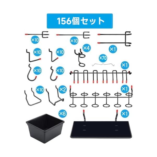 ・パッケージ内容有孔ボード用のスチール製T型フック146個セットです。 6つのパーツ収納ボックスが含まれています。