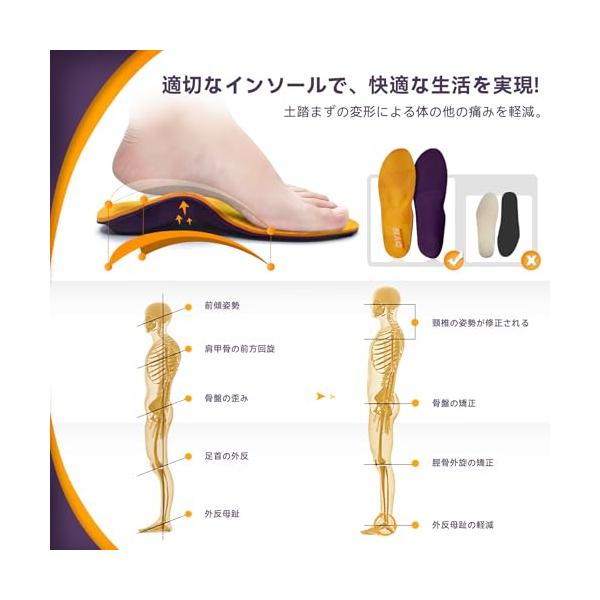 ・?疼痛緩和足底筋膜炎、扁平足、外反母趾、踵の捻挫、アキレス腱炎、過度の内反などでお悩みの方に朗報! DynWalker整形外科用インソールは効果的にあなたのアーチ、かかと、足首や膝などの痛みを効果的に和らげることができる。痛みにさよなら!