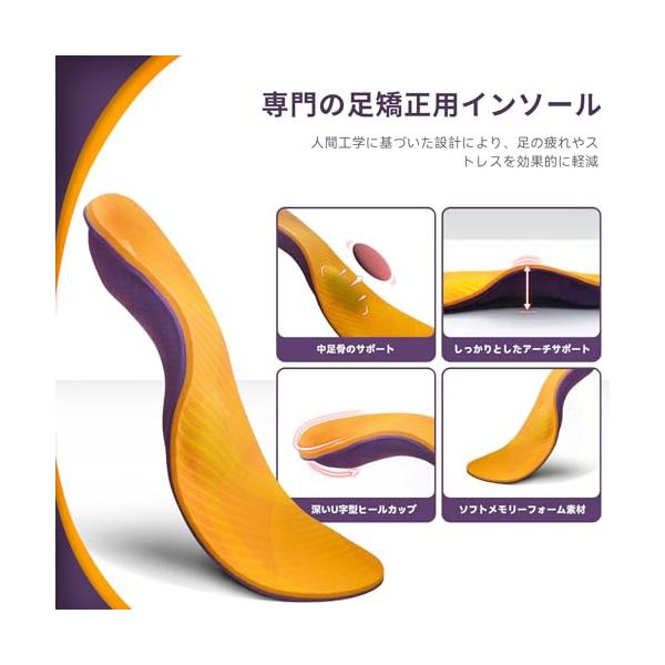 ・?4cmアーチサポート足底の痛みの緩和、快適な履き心地の持続、バランスの良い着圧で足をサポートするハードアーチサポートインソールである。この足底筋膜炎用インソールを履いて、通勤や毎日のウォーキングをより快適なものにしましょう。