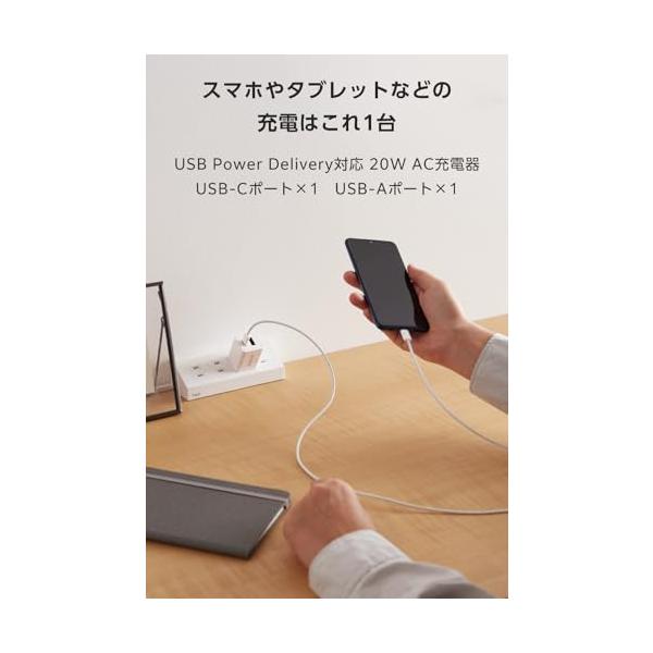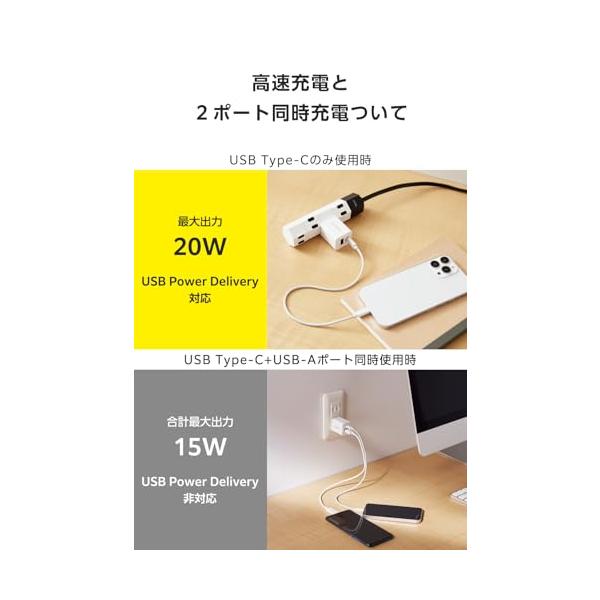 ・USB Type-C(TM)ポートやUSB-Aポートを搭載し、それぞれのポートに対応するスマートフォンやタブレットなどでも別々のAC充電器を用意することなく、これ1台で充電できるAC充電器です。
