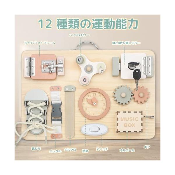 ・??ビジーボード 木のおもちゃ- 知育玩具 1 2 3 歳 には、子供たちが細かい運動能力を発達させるための12の異なるアクティビティが含まれています。 人生のさまざまな段階で、彼らは皆この ビジーボード の恩恵を受けています。