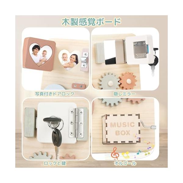 ・??優れた感覚玩具- 子供 玩具 には、ロックとキー、ドアラッチ、ギア、オルゴール、その他の感覚アクティビティが付属しています。 ドアラッチの後ろには、サプライズのための隠しミラーと額縁もあります。 自閉症の子供を含む幼児の感覚玩具として最適。