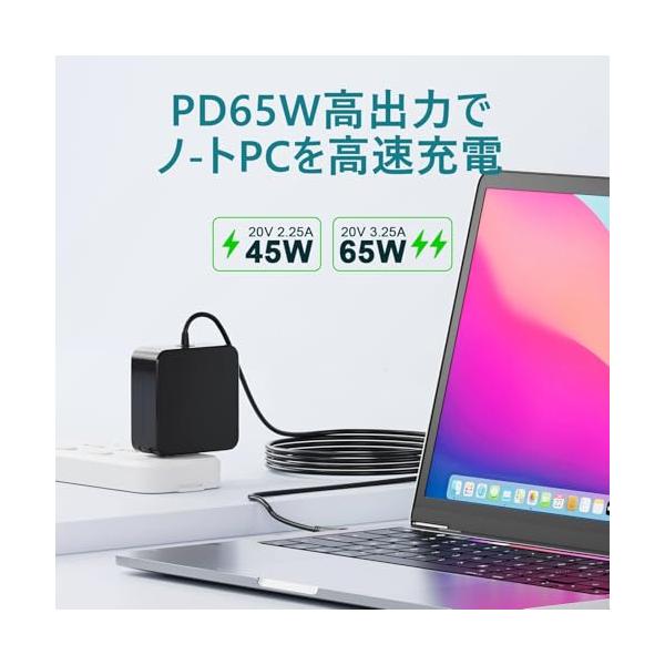 ・幅広い互換性幅広い機器に急速充電: USB PD 対応の65W出力で、スマートフォンからノートPCまで幅広い機器に急速充電できるType-c充電器です。
