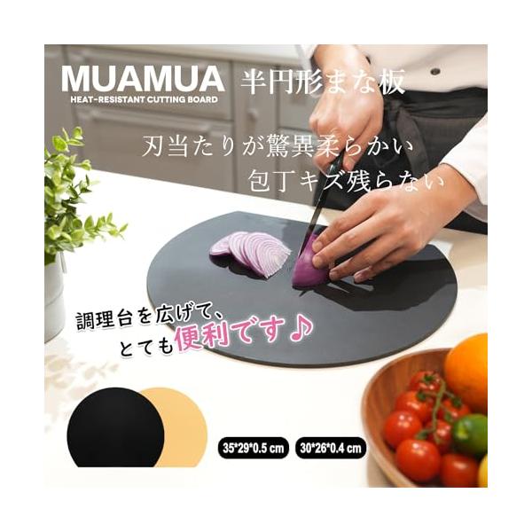 MUAMUA まな板 黒 エラストマー まないた 食洗機対応 丸い 高級耐熱まないた 抗菌 ブラック カッティングボード まな板 ゴム 約35×
