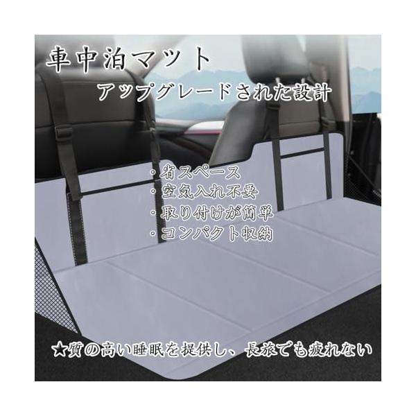 ・空気入れ不要従来の空気入れタイプは、空気漏れがやすく、設置も収納も手間がかかりすぎます!そこで、こちらの車中泊マットは面倒な空気入れが不要で、取付は後部座席に敷いて、付属のベルトをヘッドレストにかけるだけです。マットレスの隙間を埋め、落下を心配する必要がなく、より快適な睡眠をもたらします。