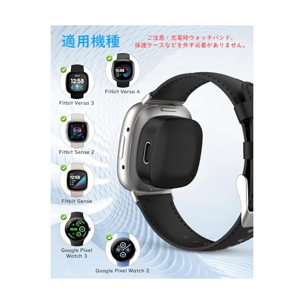 ・「適用機種」 本製品はFitbit Sense1/2、Versa3/4、Pixel Watch 3/2向けのスマートウォッチ用充電ドックです。ケーブルが付属されていないため、ご自分で充電ケーブルを用意する必要があります。記載していない機種に適用可否かに質問にてお気軽にお問い合わせください。使用時の注意事項:充電器とホストは磁気的に接続されており、磁石にはN極とS極があり、逆方向から挿入すると相反発が発生します。接続時に磁石が反発する場合は、方向を変えて再度お試しください。