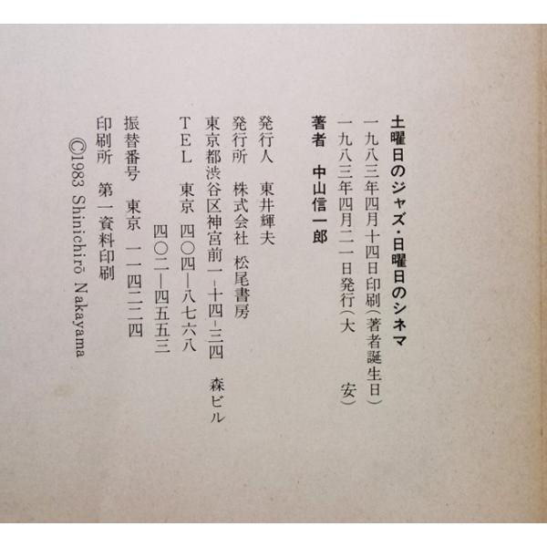 古書 中山信一郎 『 土曜日のジャズ 日曜日のシネマ 』 松尾書房 1983年初版