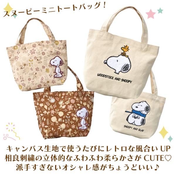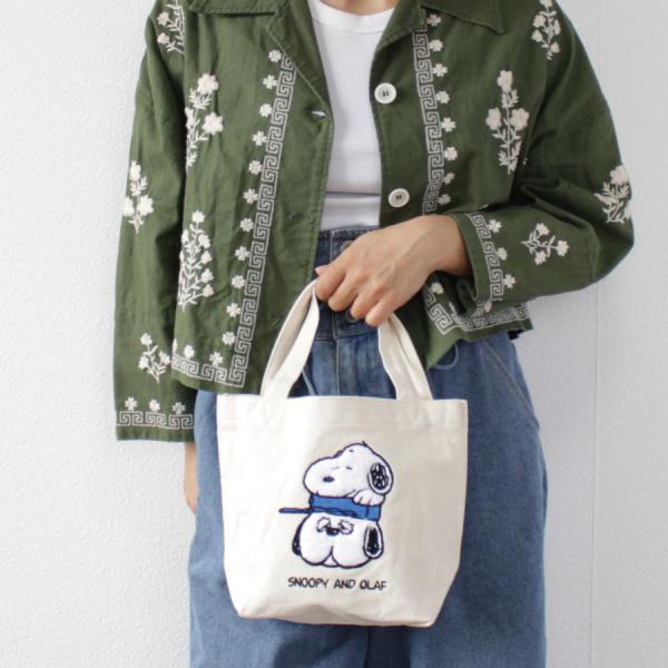 スヌーピー ミニ トートバッグ キャンバス 刺繍 帆布 オラフ ウッドストック フラワー お洒落 可愛い ランチトート お弁当 休憩 バッグ 女性 PEANUTS シフレ6077