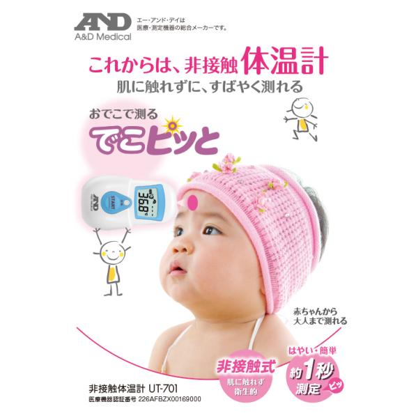 非接触体温計 早い おでこで測る 電子体温計 UT-701(でこピッと) イエロー エー・アンド・デイ【B級品:付属電池の電力が尽きていることがあります】