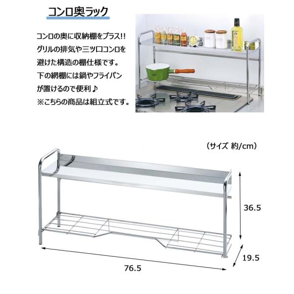 ラック コンロ奥 2段 ステンレス コンロ奥ラック AK-083 キッチン 収納 スペース 台所 家族 新生活 一人暮らし 母の日 キレイ すっきり 片付け 調味料 鍋