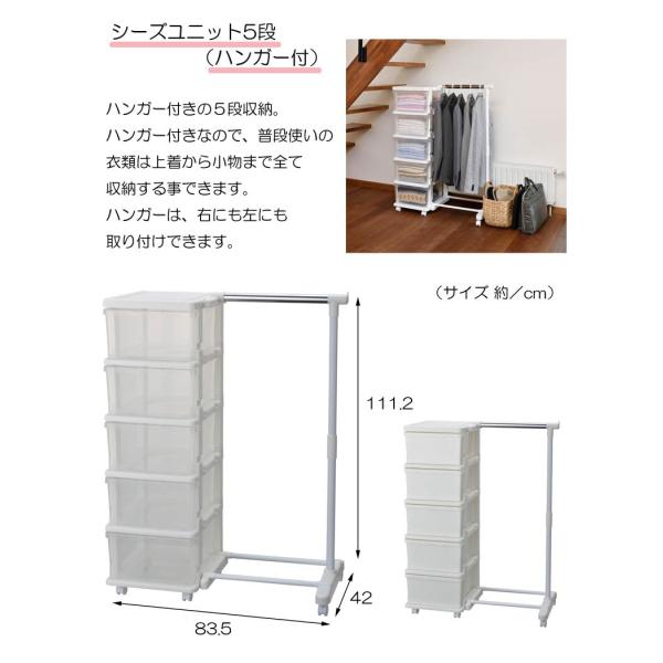 収納 収納ケース 引き出し プラスチック 5段 キッズ ハンガーラック シーズユニット5段ハンガー付 引出し収納 ホワイト セット キャスター付 爆買