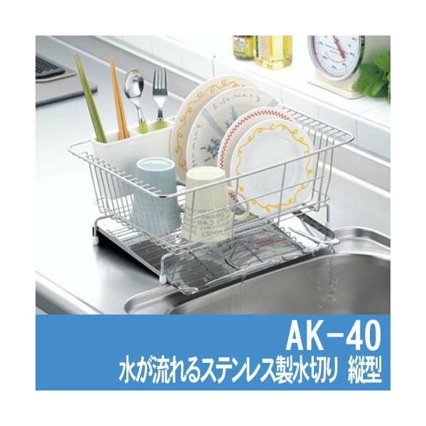 AK-40 水切りラック 水切りカゴ ステンレス 流れる 水が流れるステンレス製水切り縦型 キッチン 日本製 新生活 送料無料 クリスマス プレゼント 爆買