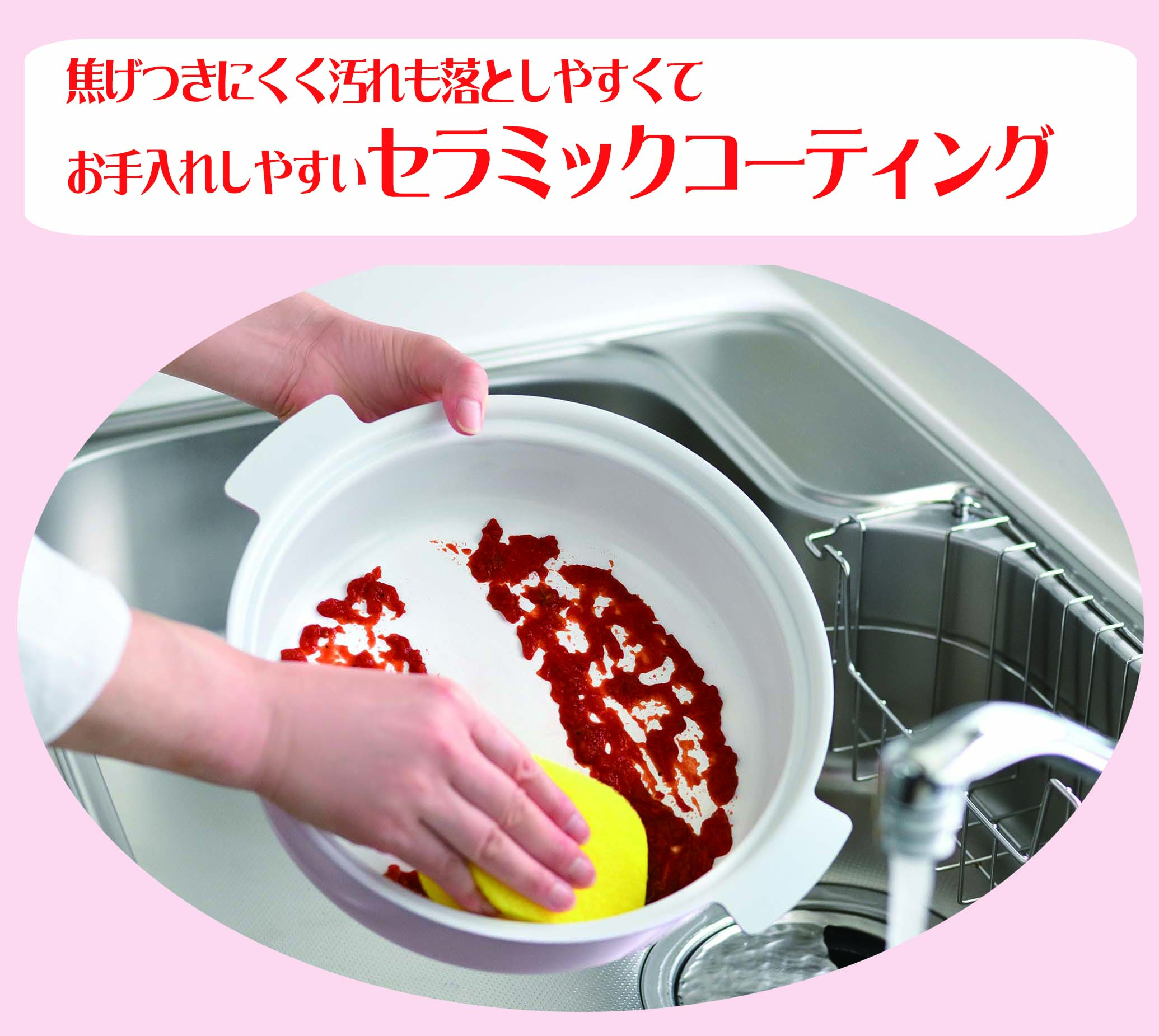 セラミックコーティングにより、焦げ付きにくくお手入れも簡単です。