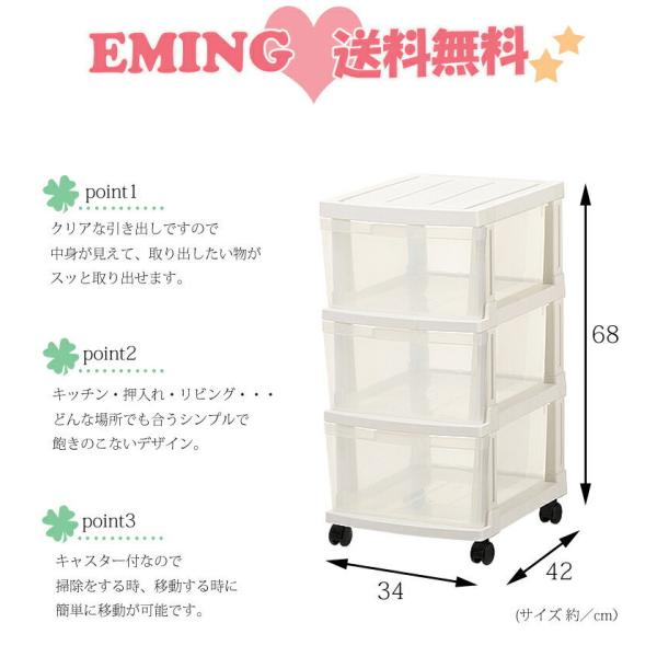 収納 衣類収納 3段 エミング チェスト ボックス 深型 ストッカー プラスチック 衣装ケース 引出し 新生活 爆買